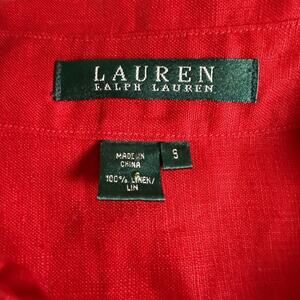 100% Linen Ralph Lauren Women’s Roll Tab Collared Red Button Shirt Sm Normcore