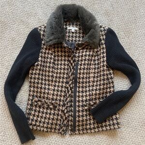 CAbi Women's Houndstooth Jacket with Faux Fur Collar
