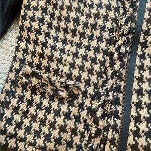 Elevate your style with this chic women's houndstooth jacket. Featuring a classic black and white pattern and a luxurious faux fur collar, this jacket is perfect for any occasion. Stay warm and stylish with this must-have piece. Size 4. Excellent used condition. From a smoke and pet free home. Beautiful and stylish jacket!