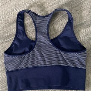 Stylish navy and white striped sports bra. Features Calvin Klein logo. Comfortable and supportive design. 2 SPORTS BRAS SIZE XS / Small