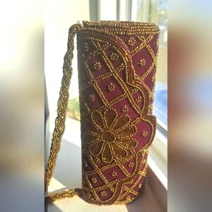 Burdau Tube Velvet And Gold Bead Eveing Purse