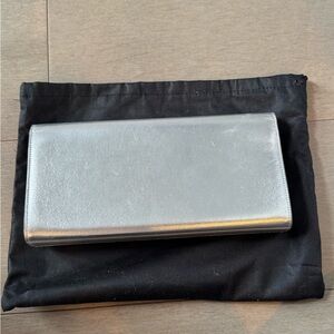 YSL Saint Laurent Cassandre Metallic Silver Clutch Bag Gold Hardware