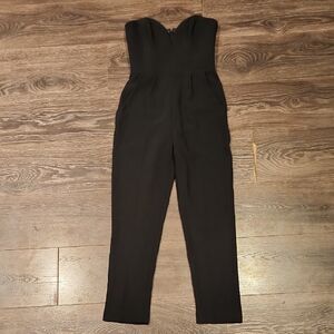 womens ladies black sleeveless strapless special occasion tapered leg sweetheart neckline jumpsuit romper an anthropologie anthro revolve brand