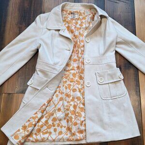 Tulle Anthropologie Women' Cream Wool Blend Pea Coat Mid Length Button Jacket S