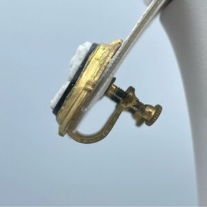 vintage cameo earrings feature a raised white profile silhouette on a black background, framed in a gold-tone setting with a screw-back closure