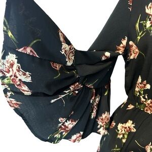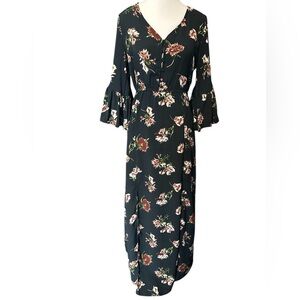 Anama Maxi dress front slit, Boho, Green floral print, buttons, Sz S