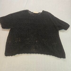 Teddi Vintage Black Crochet Knit Floral Cross Stitch Cardigan Sweater XL