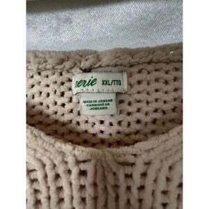 Aerie Oversized Chenille Knit Hoodie Sweater Cream Beige V-Neck XXL Pullover