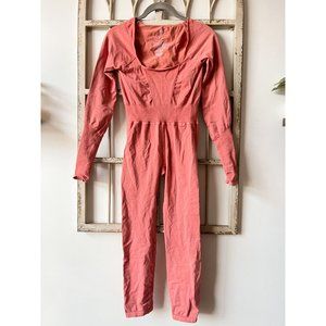 Free People Movement Good Karma Long-Sleeve Onesie Pink Autumn Leaves M/L NEW
