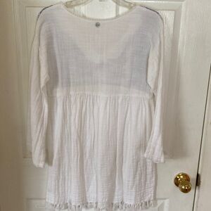 Chic Billabong white gauze mini with elegant blue embroidery. Soft white fabric. Ideal for casual wear.
