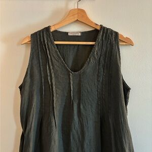 Elevate your wardrobe with this chic sleeveless midi dress in a deep grey hue. Perfect for versatile styling, this dress combines elegance and comfort effortlessly. 100% linen, made in Italy.