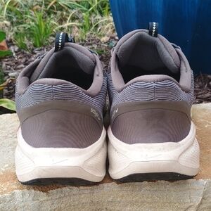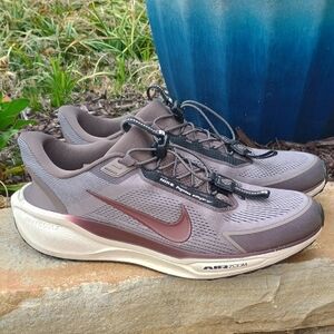 Stylish Nike Air Zoom shoes with a modern gray and brown look. Ideal for running.