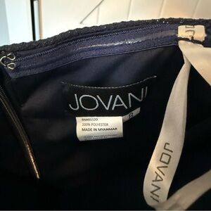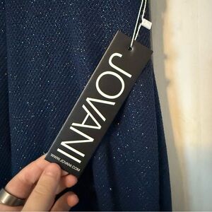 This stunning strapless dress in navy blue is perfect for any formal occasion. The elegant design features a flattering silhouette and a chic slit for added style.