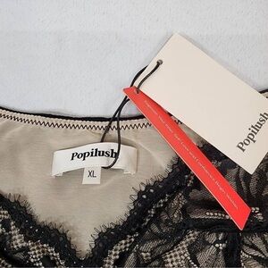 POPULISH Black Shapewear Sculpting Bodysuit V Neck Lace Thong