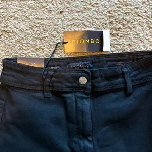Elegant black trousers by Piombo. Sleek design with a secure button closure. Ideal for versatile styling. Wide Leg
