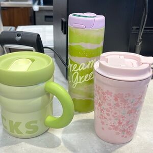 Starbucks Green and Pink Travel Mugs Set - inspired by Matcha and Cherry Blossom