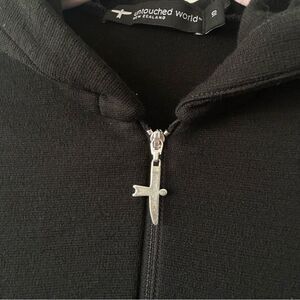 Slightly fitted silhouette, a hood and front zipper with a Māori kite pull.