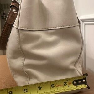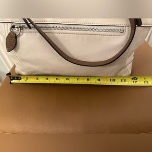 Coach Penelope Cream Leather Turnlock Tote Brown Trim