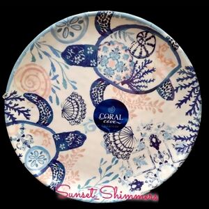 New with sticker tags, 8 piece seashell indoor / outdoor heavy duty Melamine Dinner Plate & salad plate Set. You will receive: 4 Dinner plates - measures approx 10.5"d and 4 salad / appetizer / dessert plates - measures approx 8.5"d. Sooooo pretty!
