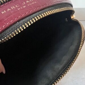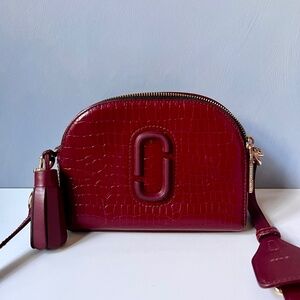 Authentic Marc Jacobs Snapshot crossbody bag in deep red croc-embossed leather with gold-tone hardware.