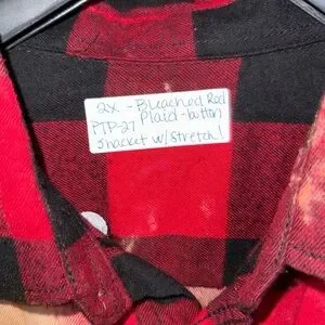 Bleached Red Plaid Button-Up Flannel with Sequin Reindeer, Size 2X