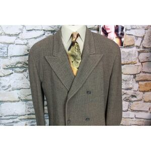 Donna Karan New York double-breasted blazer crafted in Italy with a sophisticated textured weave in earth tones. This tailored jacket features sharp peak lapels, a six-button front arrangement, and a single back vent for ease of movement. The interior is fully lined and includes functional pockets, showcasing the high-quality craftsmanship expected from the brand. Perfect for professional settings or elevated casual wear, this piece offers a timeless silhouette with a modern designer touch.