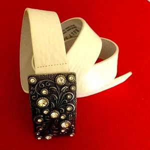 Like New🇨🇦Genuine Italian Leather Belt with Jewelled Buckle