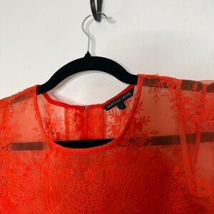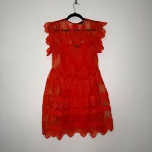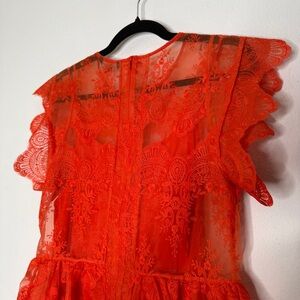 Marissa Webb Kallisti Orange Floral Lace Dress Silk Slip Ruffle Sleeve Size S