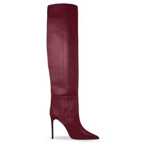 Elevate your wardrobe with these chic burgundy stiletto heeled boots. Perfect for adding a touch of elegance to any outfit. Below the knee tubular boot in genuine leather with 100mm or 120mm stiletto heel