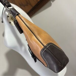 Y2K Vintage Rare Brown Hobo Shoulder Purse C Logo Two Tone Leather Canvas Bag