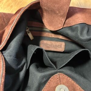 Sundance Origami Italian Suede Bag - Brown, zip pockets inside and out. EUC
