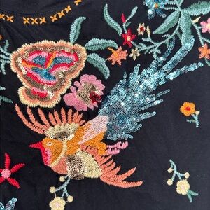 Johnny Was Soha Relaxed Sequin Tee XS Black Embroidered