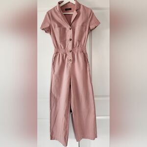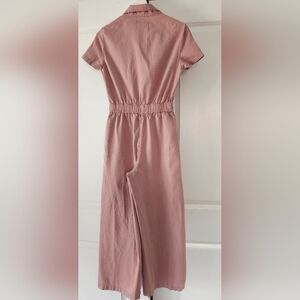 Bershka, vintage jumpsuit, utility suit, pink jumpsuit, mauve, short sleeve, pockets, XS.