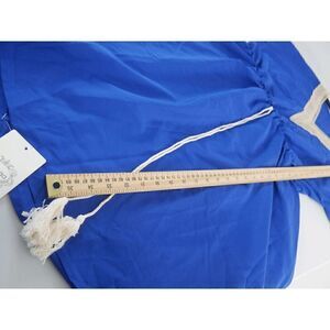 Women's Trimmed Short Sleeve V Neck Tie Front Flowy Dress M