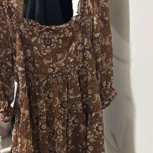 Step out in style with the Velvet & Vine Long Sleeve Floral Dress. This elegant brown dress features a charming floral pattern, perfect for any occasion.
