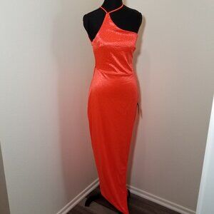 Lulus Womens Medium Coral Halter Long Dress Rhinestone HOCO Formal Prom NWT