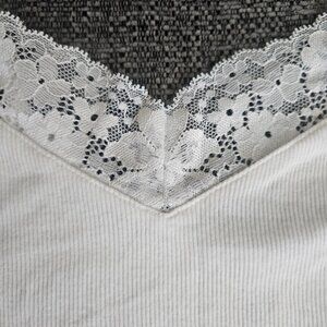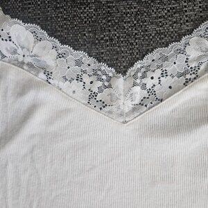 Victoria Secret white Y2K crop top v neck lace ribbed tank spaghetti strap S