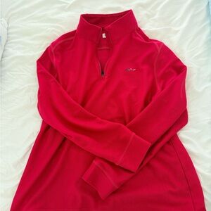 Stylish red jacket with a quarter zip. Comfortable and versatile. Perfect for casual wear.