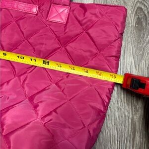Stylish pink quilted tote bag perfect for everyday use. Features durable handles and a spacious interior.