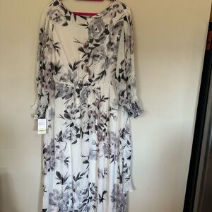 Taylor Cream and Purple Floral Long Sleeve Dress