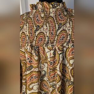 Women's Bohemian Paisley Smocked Mini Dress - Nutmeg/Yellow Size 4XL EUC