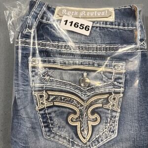 ROCK REVIVAL Katydid WOMENS 30 Mid-Rise Skinny FACTORY Distressed Jeans