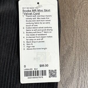 Lululemon Scuba High Rise Mini Skirt Velvet Cord Dark Gray Size 0