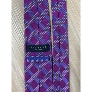 Ted Baker London Mens Silk Necktie Purple Teal Yellow Plaid Check Pattern Tie