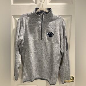 Show your pride as a Penn State Nittany Lion with this League Collegiate Wear Saranac Raglan Quarter-Zip Jacket. This pullover features a 1/4-zip design, embroidered graphics, and a fleece lining to keep you warm and comfortable during game day or while relaxing at home. Whether you’re cheering on the Nittany Lions from Beaver Stadium or just lounging around, this pullover will keep you warm and comfortable throughout the season.