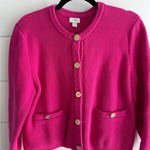 J. Crew Hot Pink Lady Jacket Cardigan with Gold Buttons, Size Medium