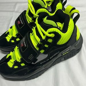 Ralph Lauren Polo Sport Mens shoes BlackYellow PS100 High Top RL Made in Vietnam