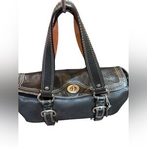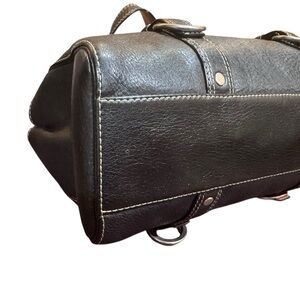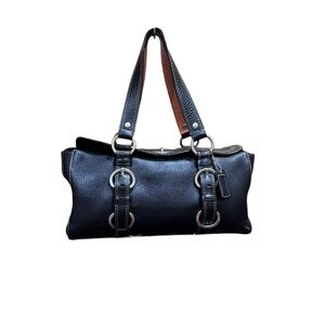 A classic Coach black pebbled leather satchel featuring dual shoulder straps, silver-tone hardware, and decorative buckle detailing. The stitching is simply perfect. Includes original dust bag and bag charm. It is clean inside and out. Interior pockets, zip pocket, key clip. Ideal for daily use or travel. Get the look of luxury without the price with this gem. 13”x6.2”x5.5” with strap drop of 9” approximately. No scratches on the leather and I don’t see corner wear. Minimal hardware scratches. Wow! The Coach Revive store sold this bag restored for over $600.