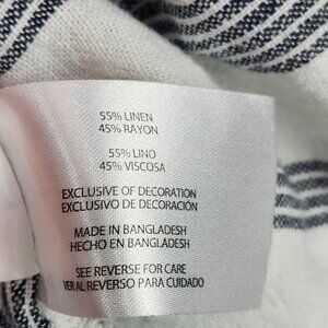 Orvis Linen Blend Button Down Shirt Womens L Roll Tab Gray White Stripe Coastal