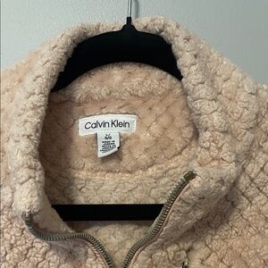 Soft and plush teddy jacket by Calvin Klein. Features a cozy pale pink color. Ideal for chilly days.